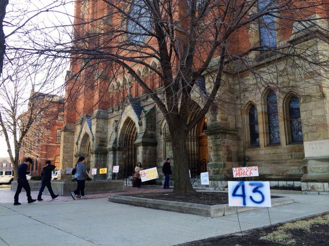 This was the first event on the Detroit leg of Caravana43, as the tour is known. It was immediately followed by a two-mile march from Saint Anne’s to Detroit’s Clark Park, attended by nearly 100 community members.