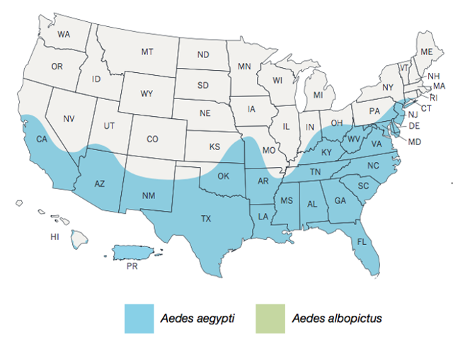 Extent of Aedes Aegypti in the United States, the main carrier of Zika