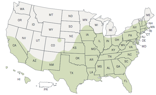 Extent of Aedes Albopictus in the United States, a mosquito also know to carry Zika