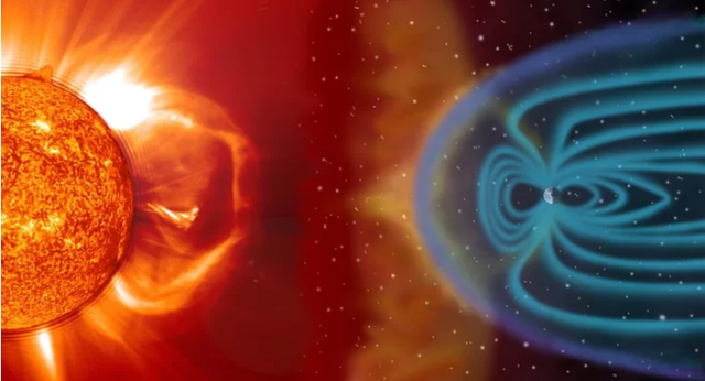 The solar wind emanates from the corona and interacts with Earth's magnetic field. Credit: NASA