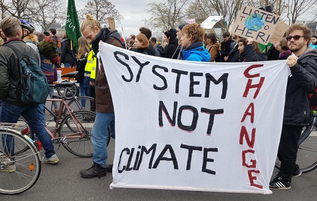 The mood at the demonstration was political and militant. Many participants had brought homemade anti-capitalist banners. “The problem is capitalism,” one read. “System change, not climate change” stated another.
