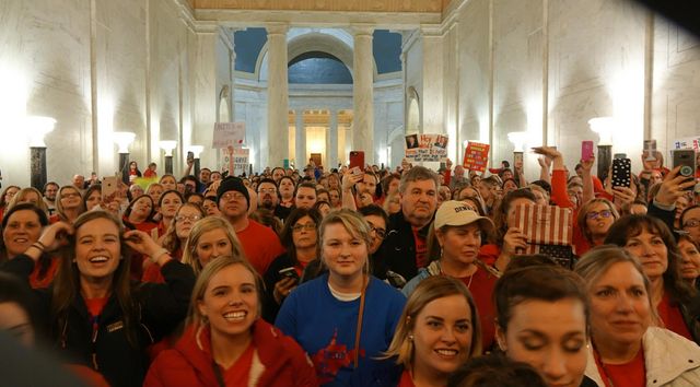 Teachers fill the capitol building in Charleston, West Virginia in 2018 (WSWS photo)