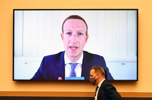 Facebook CEO Mark Zuckerberg testifies remotely during a House Judiciary subcommittee hearing on antitrust on Capitol Hill on Wednesday, July 29, 2020, in Washington. (Mandel Ngan/Pool via AP)