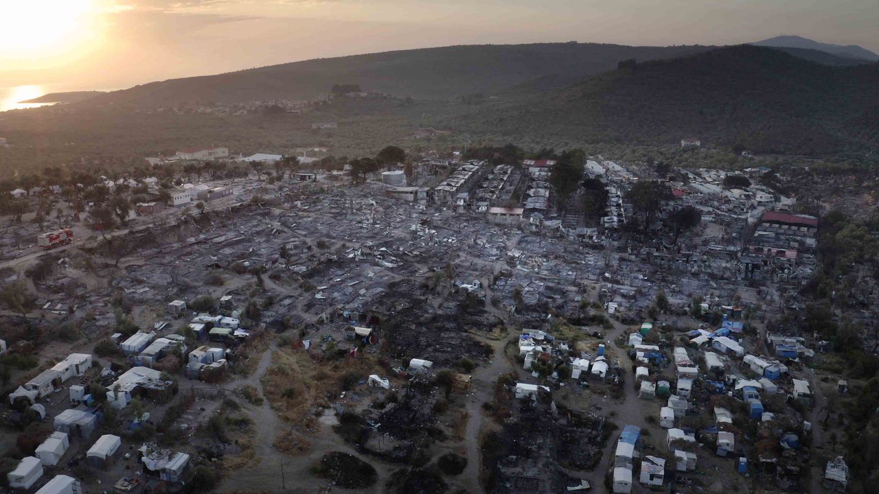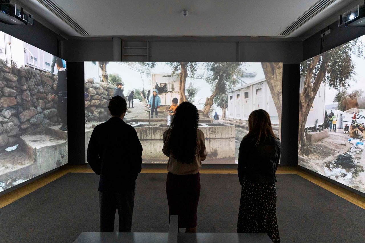 “Life in a Camp” is a 30 square-metre film installation, where the visitor is surrounded by scenes from the Moria refugee camp on the Greek Island of Lesbos. Designed to hold 2,200 people, Moria became home to more than 18,000, mainly Syrian, refugees. The footage also includes the effects of the devastating fire in September 2020, which left more than 12,000 people without shelter.
