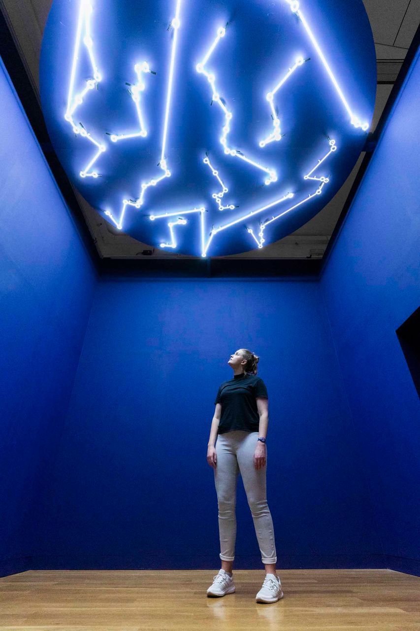 In Indre Serpytyte's neon light artwork “Constellations”, seven refugees’ journeys across the Mediterranean are represented as stars in the sky, where “the collections of lines and circles denote the stops and starts along the way, but also allude to a universal language of astronomy.”