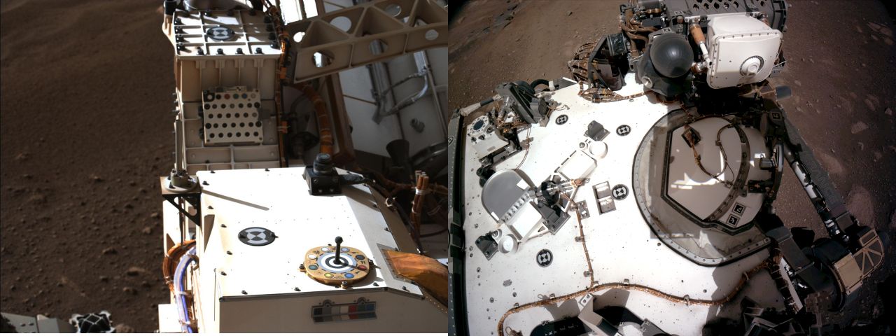 A total of five cameras were used to film the various stages of Perseverance’s descent. Two were placed on the rover, one pointed up to observe the rocket pack as that part of the landing system lowered the rover to the ground via skycrane, and one pointed down, providing a front-row seat from the perspective of a vehicle landing on Mars as it hurtled toward the Martian surface.