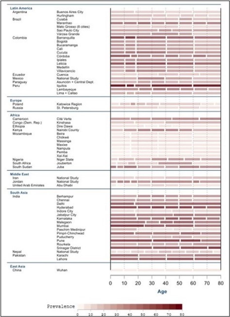 A significant finding of theirs noted that seroprevalence across age groups in developing countries was essentially the same, which meant that young people were as likely to become infected as the elderly.