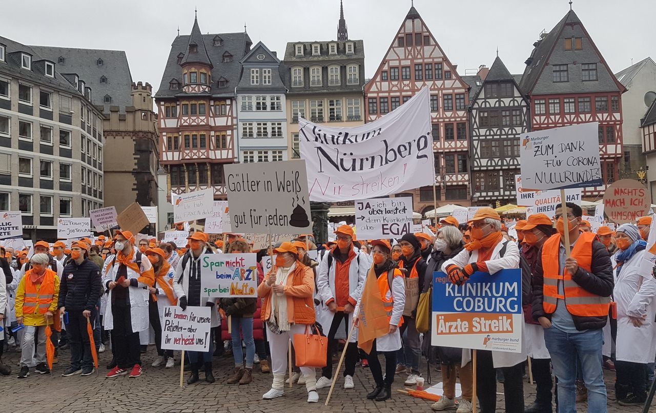 Tens of thousands of doctors drew attention to their precarious situation on Thursday with a nationwide warning strike. Around 4,000 took part in the central rally on Frankfurt’s Römerberg. Almost 500 municipal hospitals throughout Germany were on strike, except for Hamburg and Berlin.