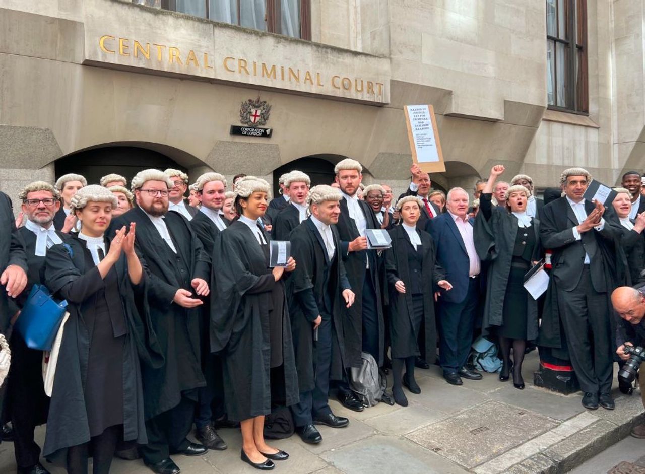 Action will resume on August 1 with a five-day walkout and strikes every other week until their demands are met. “Day of Action” protests were held today outside London’s Old Bailey criminal court and at crown courts in Manchester, Leeds, Bristol and Cardiff, with further protests to follow.