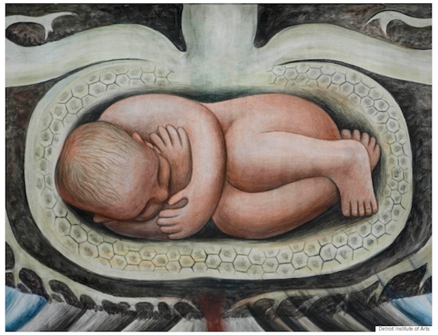 Baby in a plant bulb from the east wall of the Detroit Industry Murals, Diego Rivera