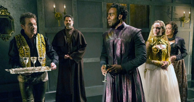 Ford’s ability to tell a complex story now comes to the fore. Richardetto (Marc Vietor) is not dead, but has in fact arrived in Parma disguised as a doctor, along with his niece Philotis (Auden Thornton). Richardetto, for his part, is also seeking revenge on Soranzo and convinces Grimaldi that by stabbing Soranzo he will eradicate his principal competition for Annabella’s affections.