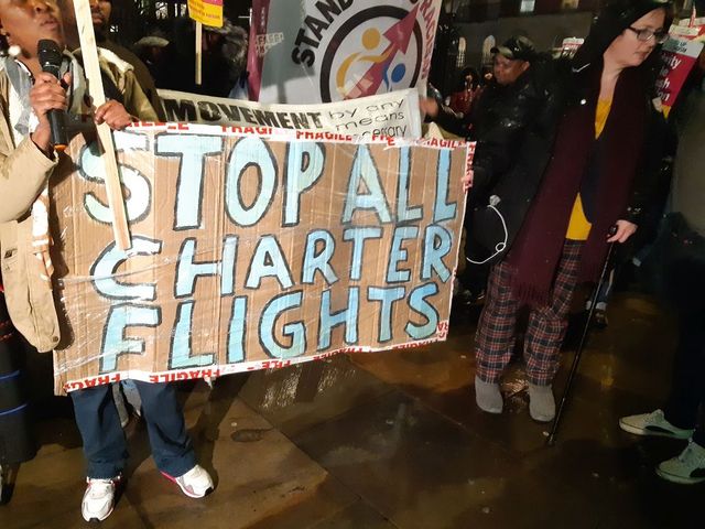 The flight was originally scheduled to leave the UK today from Heathrow Airport at around 6:30 a.m but in the end it was not revealed where the flight departed from or when it left. The men on board were among 700 immigrants, refugees and asylum seekers being held at two immigration detention removal centres near Heathrow Airport—Colnbrook and Harmondsworth.