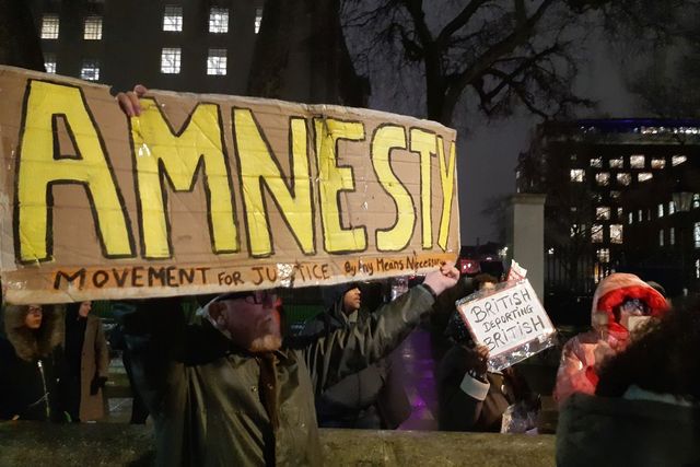 The Court of Appeal decision was made as hundreds of people demonstrated outside Downing Street Monday evening. Among their chants were “Stop charter flights! We want human rights!” Home-made placards demanded, “Amnesty for All. No More Tearing Families Apart” and “Jamaican government stop colluding with UK government racist charter flights”.