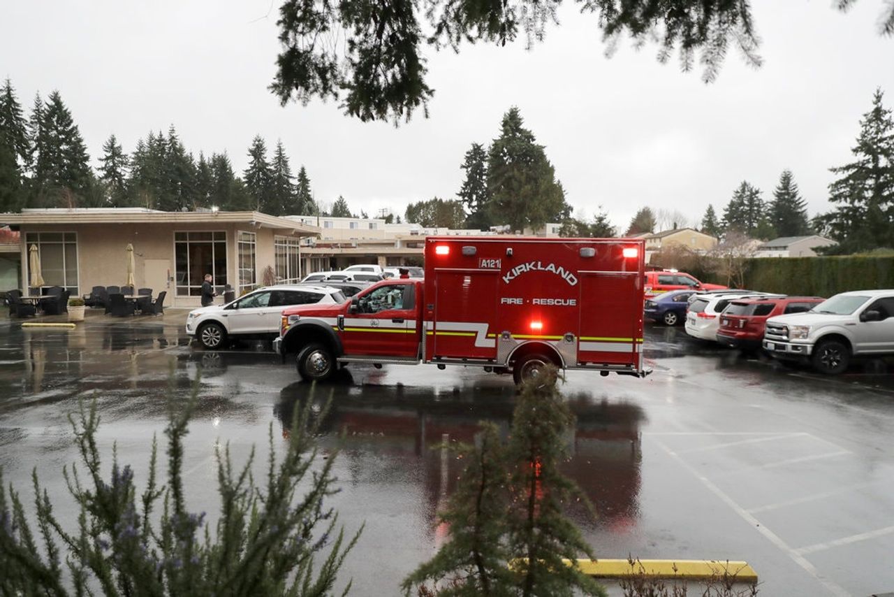 Ambulance at Kirkland nursing home. Credit: Ted S Warren/AP