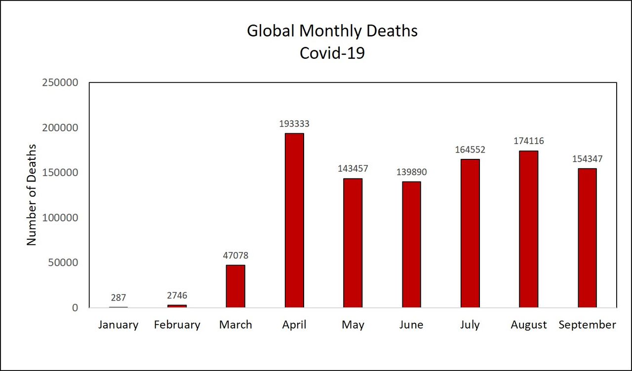 Such a massive rapid loss of life is unprecedented in recent history. It was only eight months ago that the first 1,000 deaths were tallied, and practically all took place in China. There are now 1,039,332 deaths, spanning all the world’s continents except for Antarctica, and by most scientific and public health sources, that figure represents a considerable underestimate. COVID-19-related deaths already exceed annual deaths from HIV and malaria and may surpass tuberculosis. There is more death forthcoming.