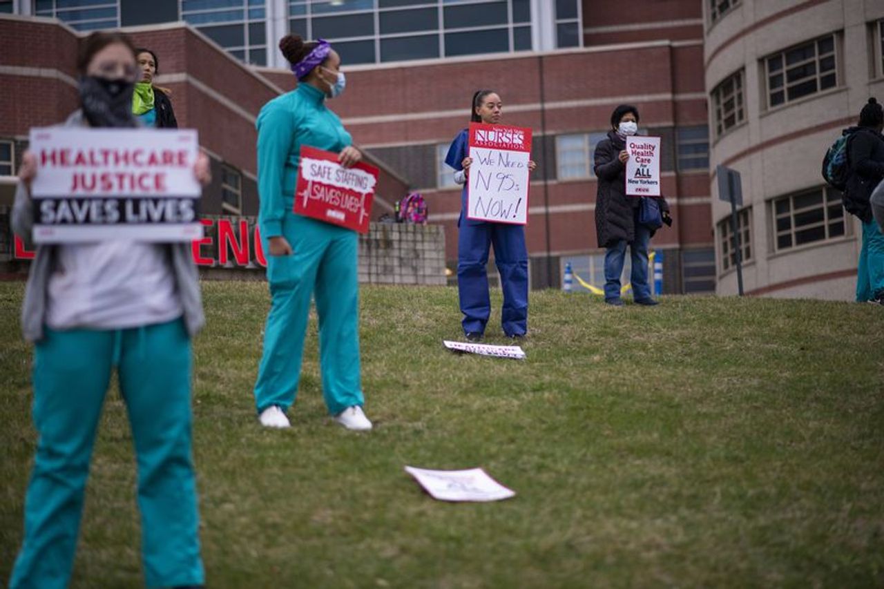 Protesting nurses at Jacobi Medical Center in the Bronx. Credit: Gregg Vigliotti