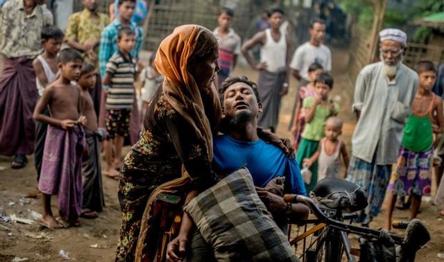 Muzammil, 37, is comforted by his stepmother while waiting outside a pharmacy for the pharmacist to arrive. (Photo: Tomas Munita)
